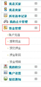 一:登陆会员中心点左边的“资金管理”--提取现金